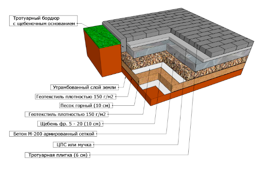 3.Тротуарная плитка изготавливается из смеси цемента, песка, щебня, воды, различных